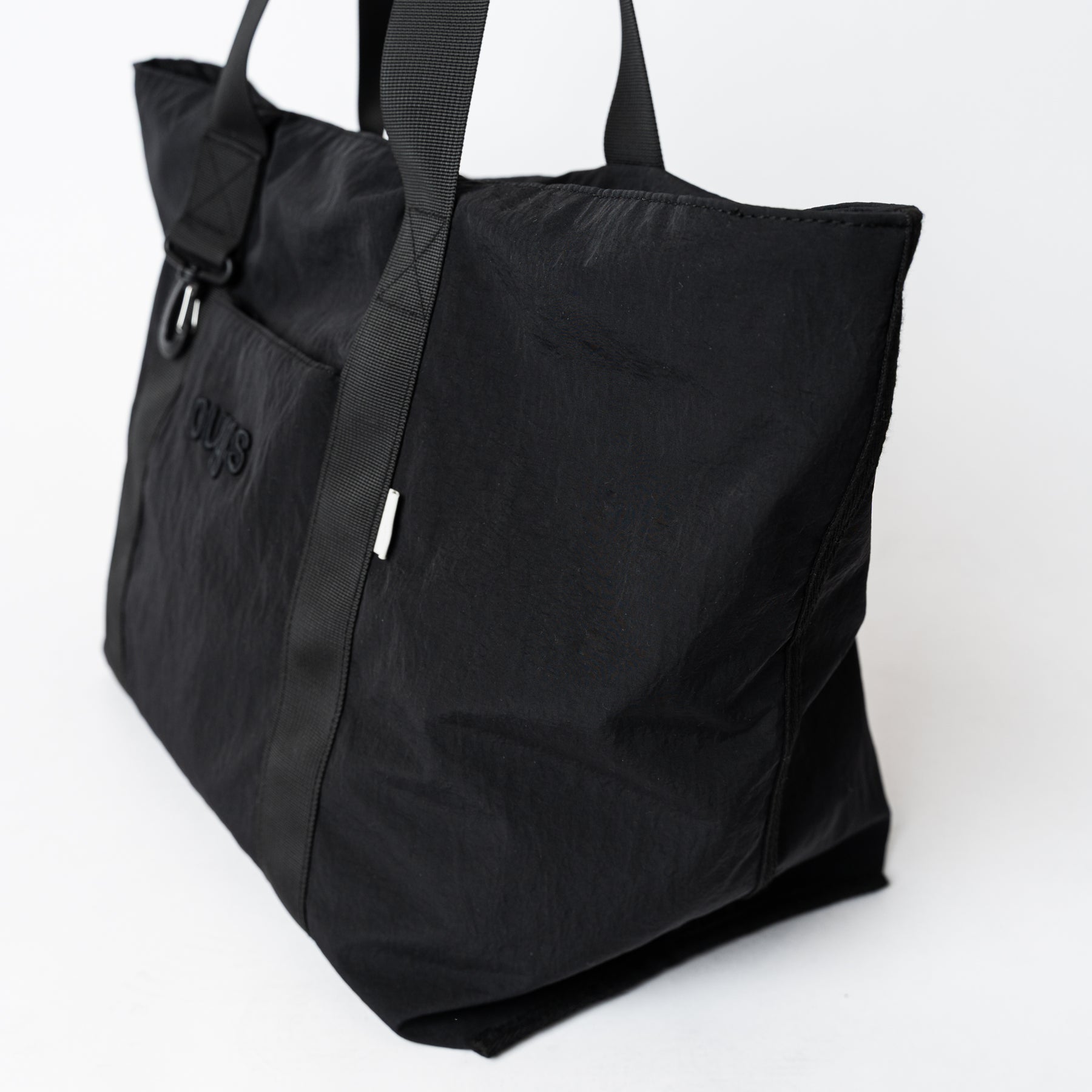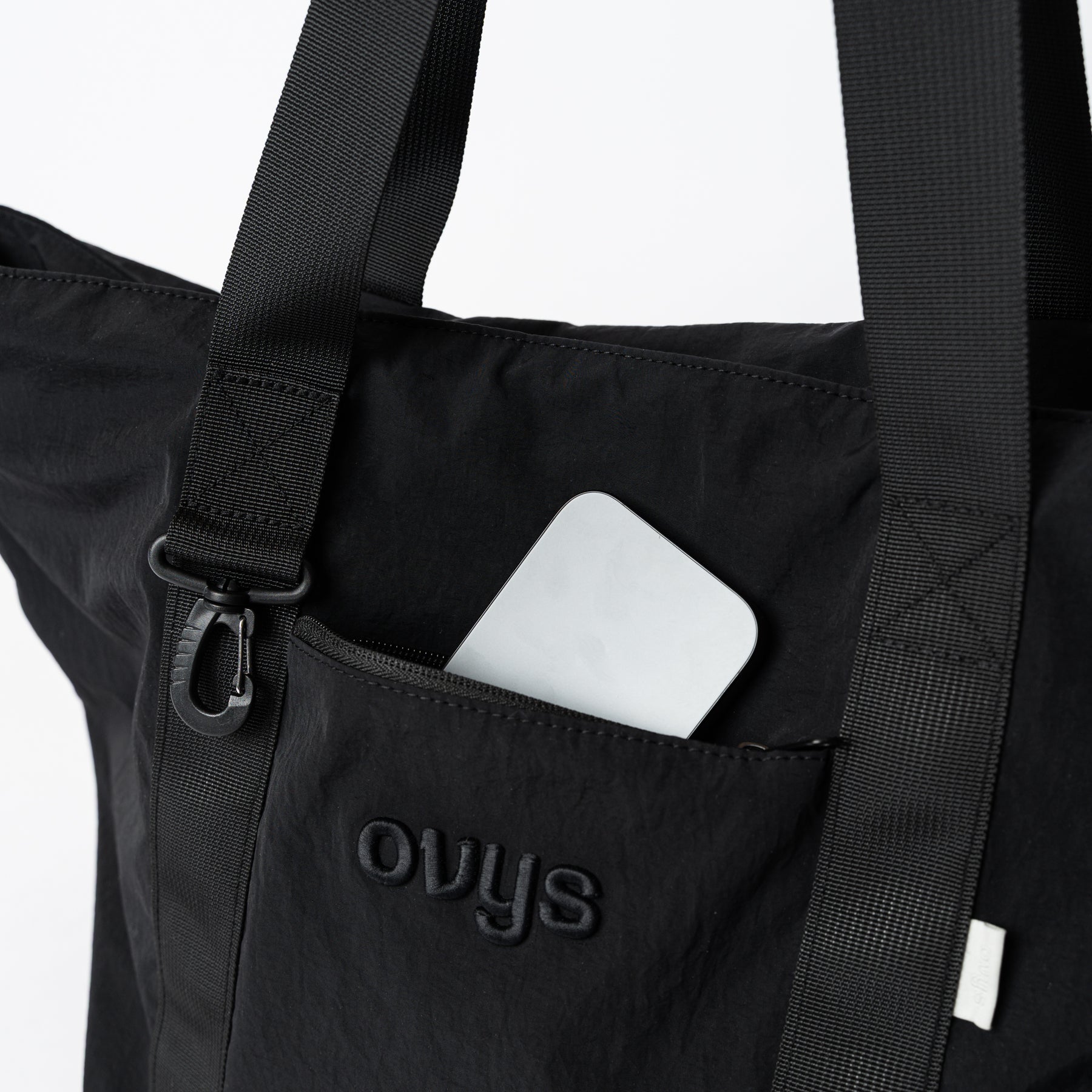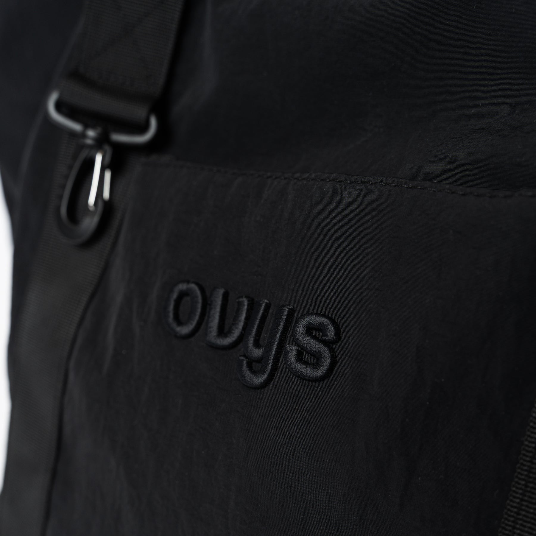 <素材/機能性> 本体には耐久性に優れた高密度ナイロンを採用。摩耗の激しい底面はパイピング処理で補強を施しました。 ストラップには耐久性の高いナイロンテープを使用し、男性でも肩掛けしやすい長さを緻密に計算して設計しています。<スタイル> 装飾を削ぎ落としたミニマルなルックスに、ovysのロゴ刺繍を配置。インダストリアルな雰囲気漂うシャープな印象は、アクティブウェアからジャケットスタイルまで、合わせる服を選ばないノームコアなデザインに仕上げました。