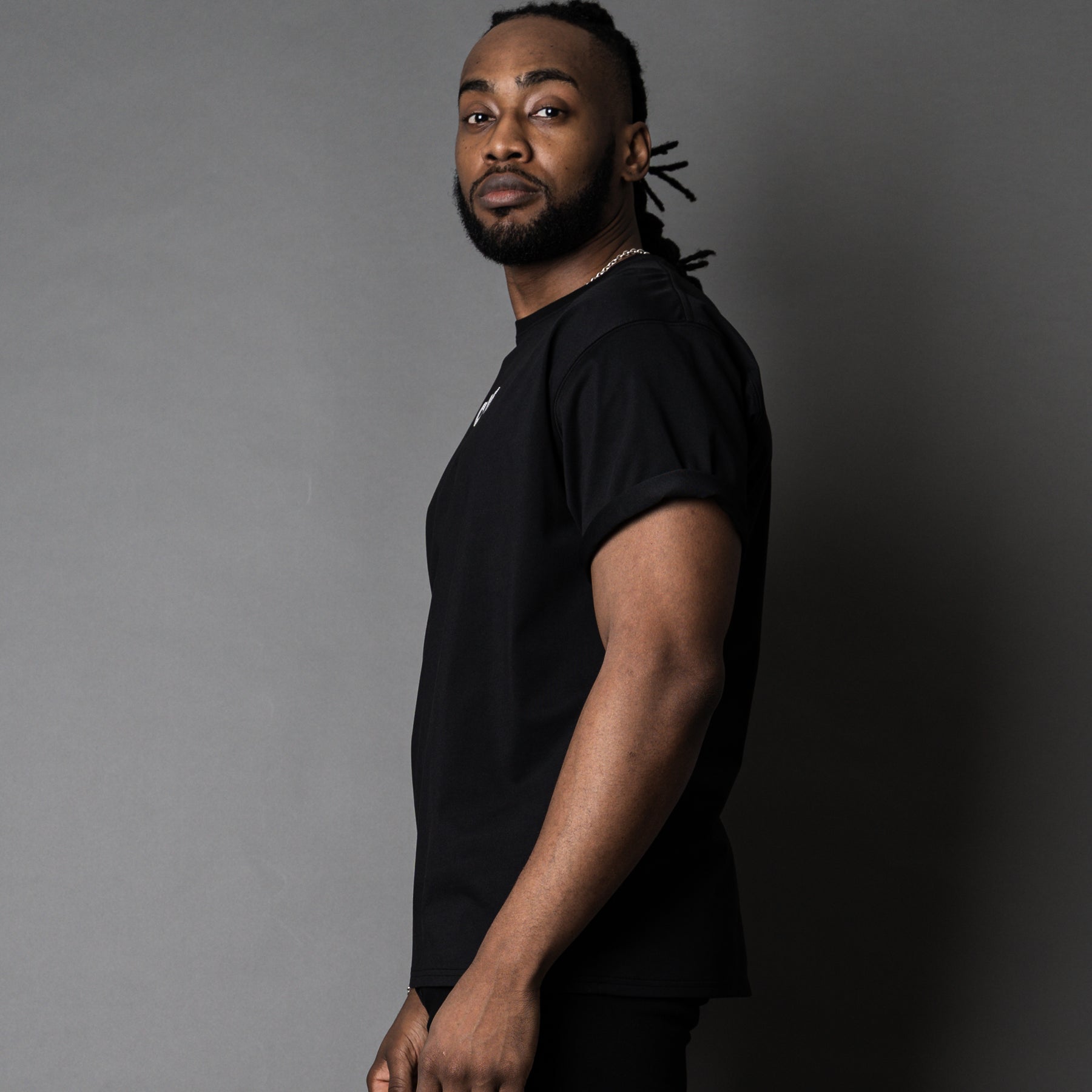 身体のラインを拾いすぎないリラックスした着用感ながら、だらしなさを感じさせない計算されたサイジングが魅力です。